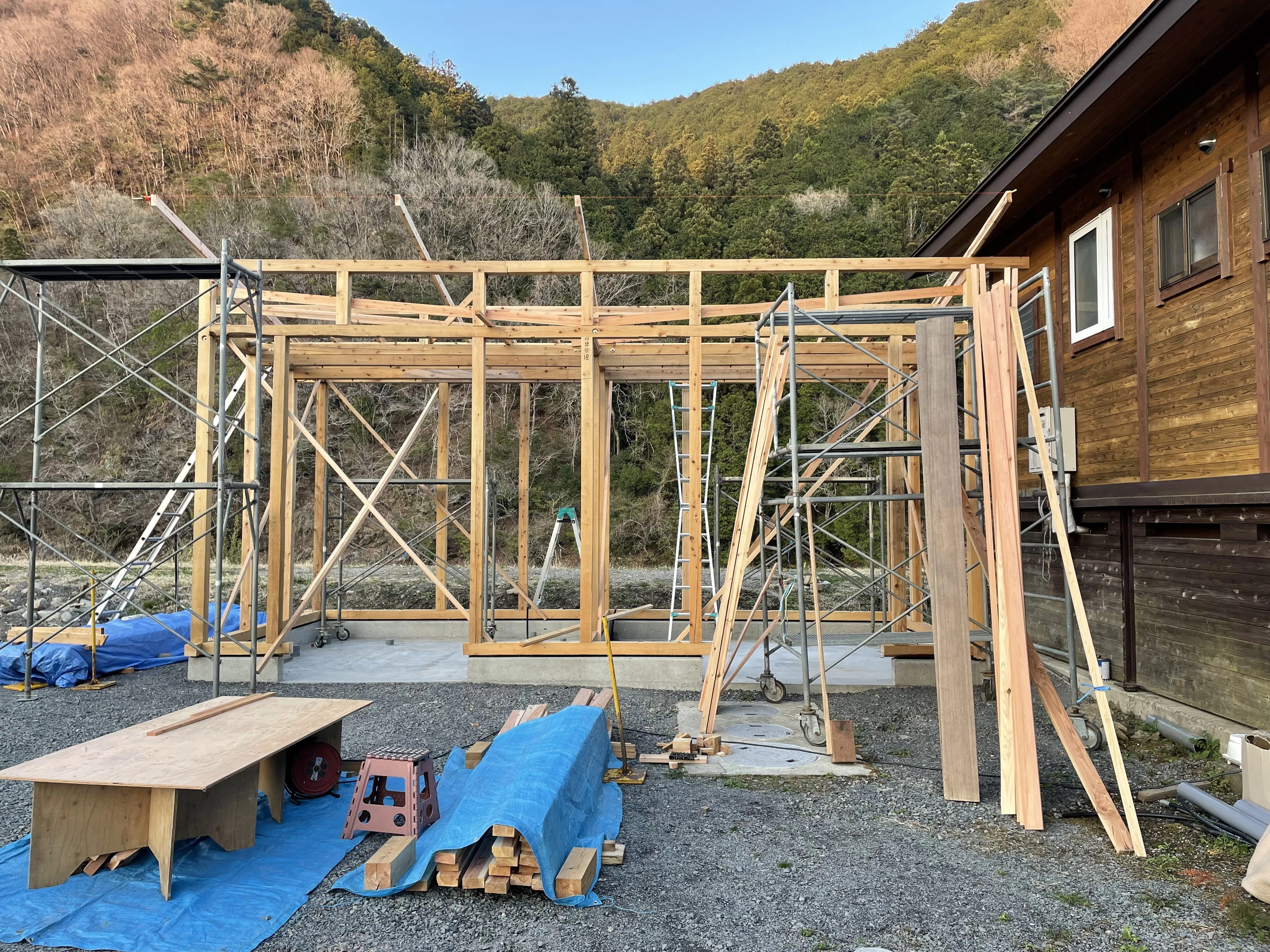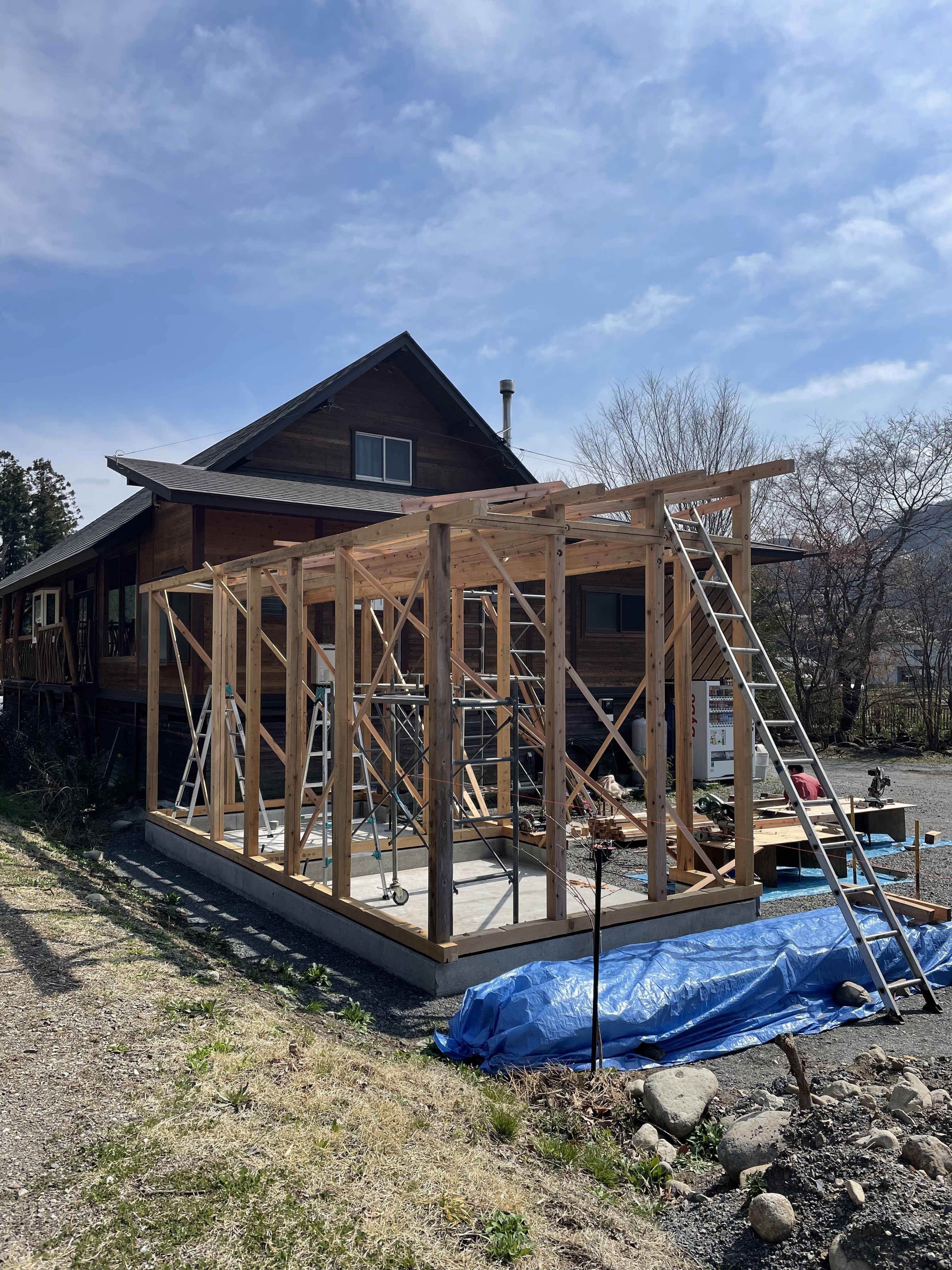 新設トイレシャワー棟ですが、4月中の完成に間に合わせるべく工事を進めております!!