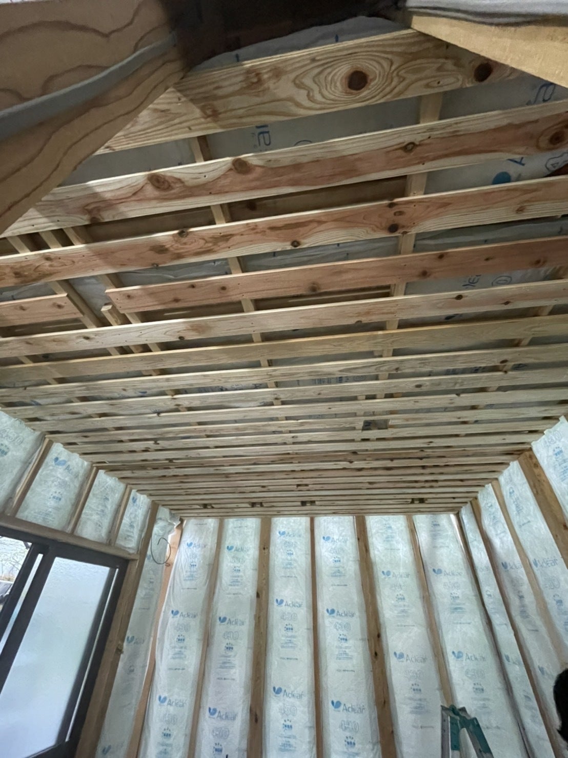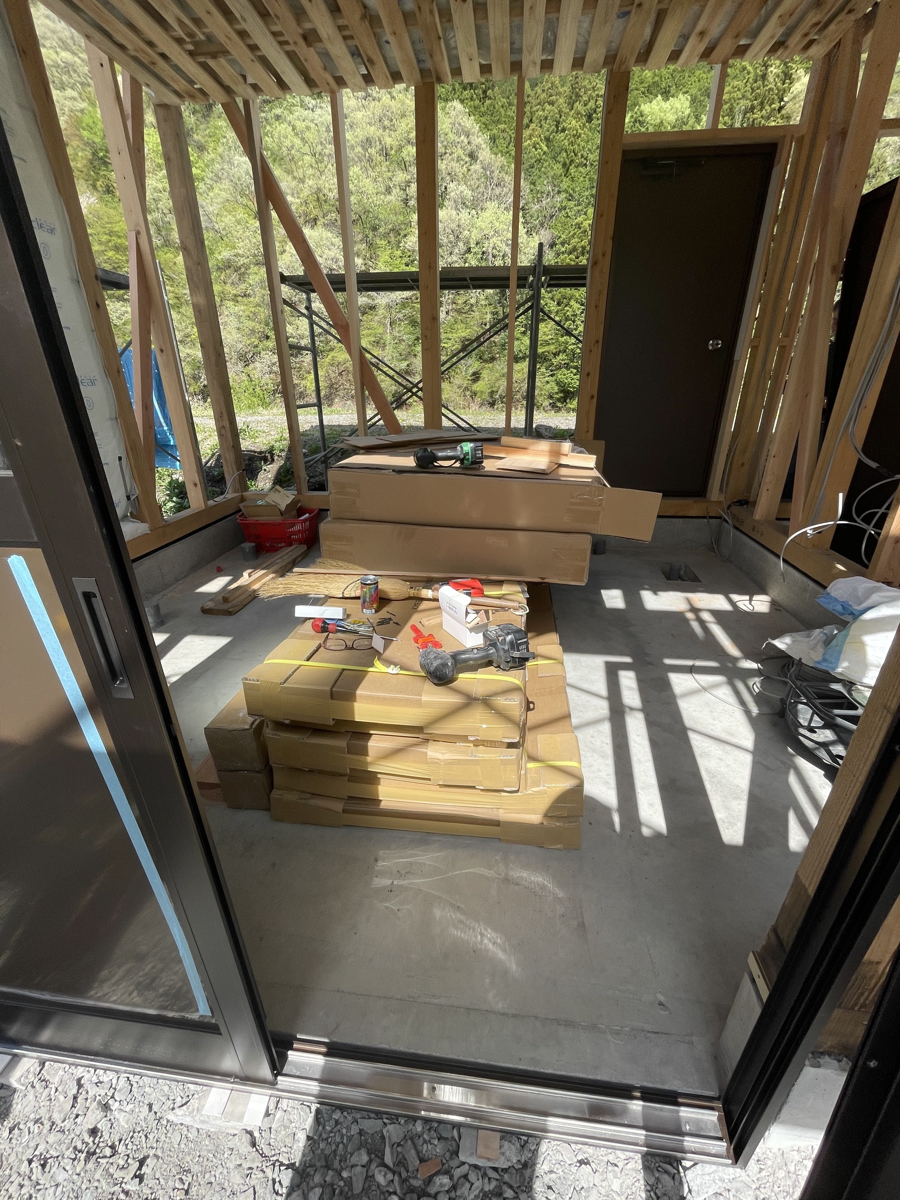 村長も、やっと手伝える工程に入りました。大工さんの指示のもと天井の張り付けを手伝っています。(村長が頑張っている写真はない、ごめん。笑)
