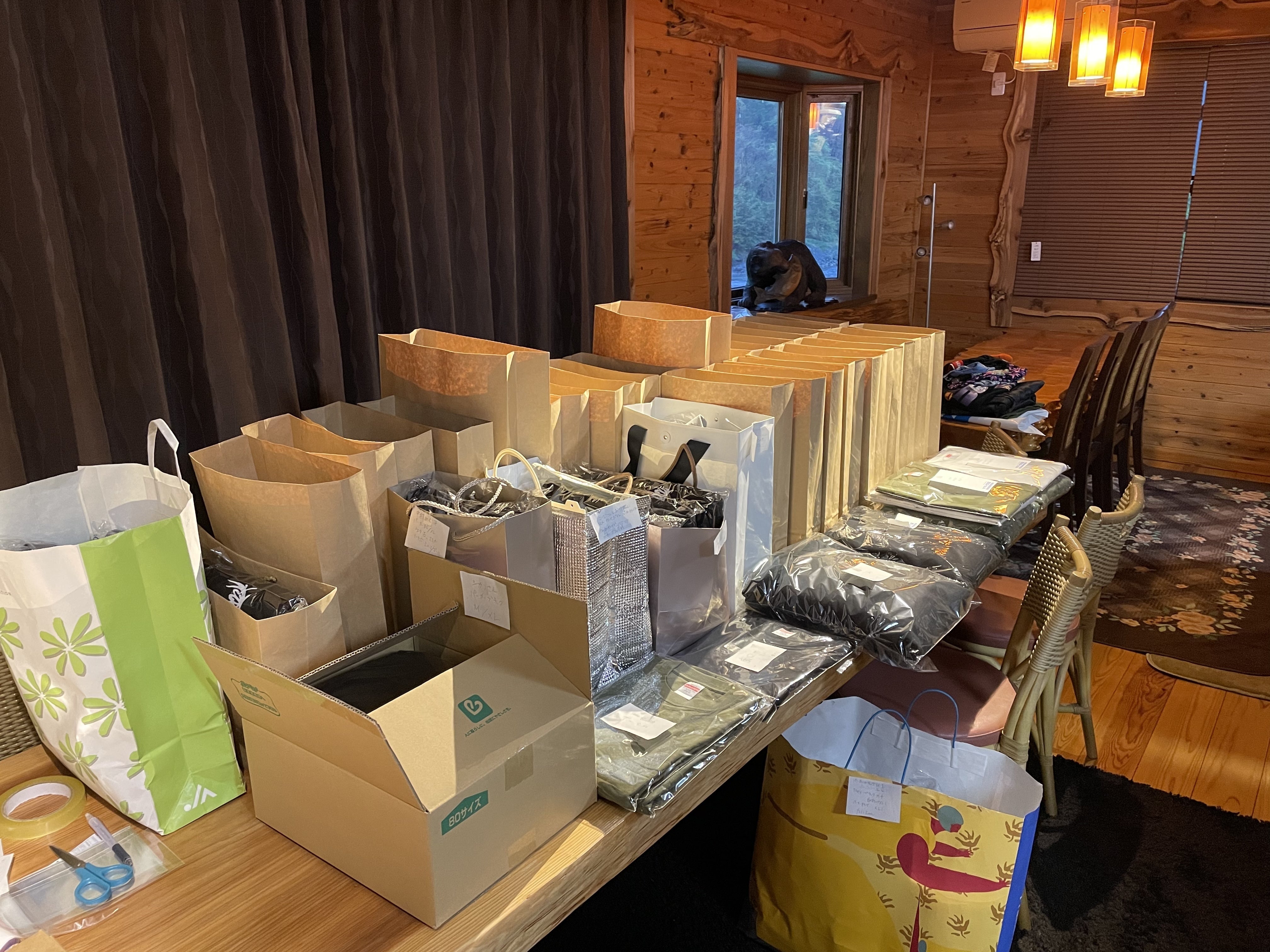 返礼品のパーカー、Tシャツも届き、梱包しまくりです!笑