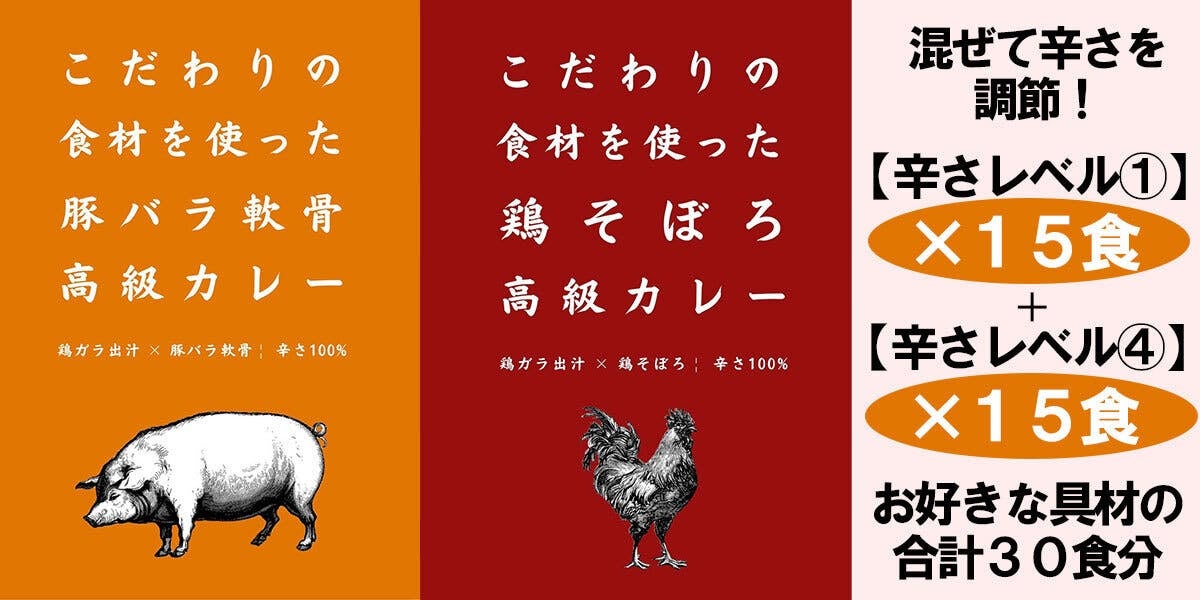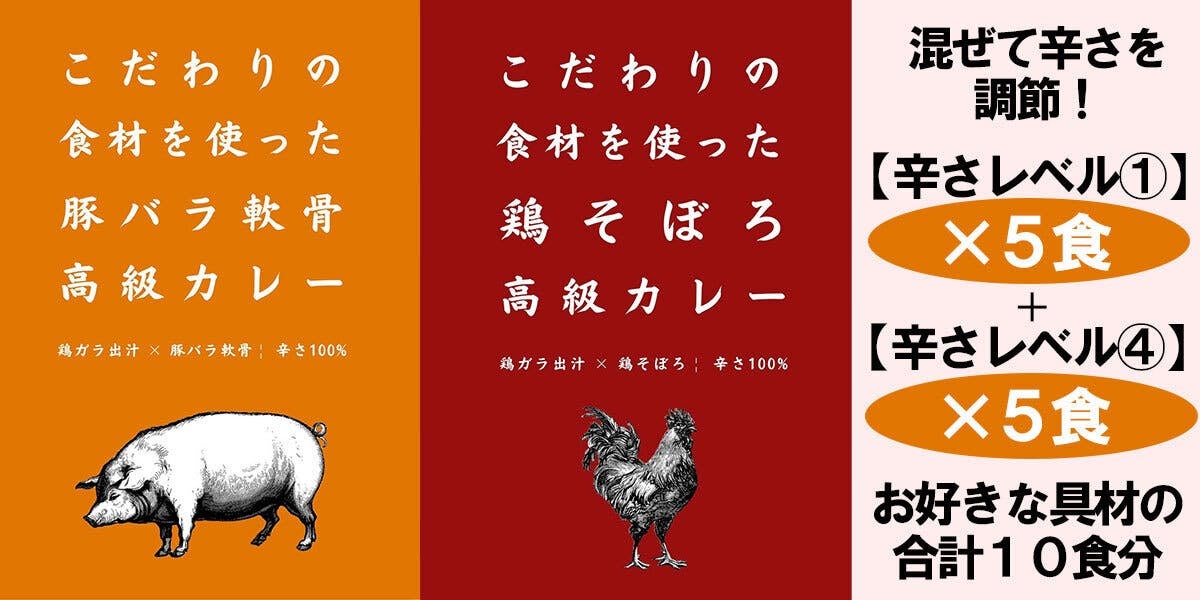 豚バラ軟骨・鶏そぼろともに、カレーの辛さがレベル1~レベル4の4段階からお選びいただけます。