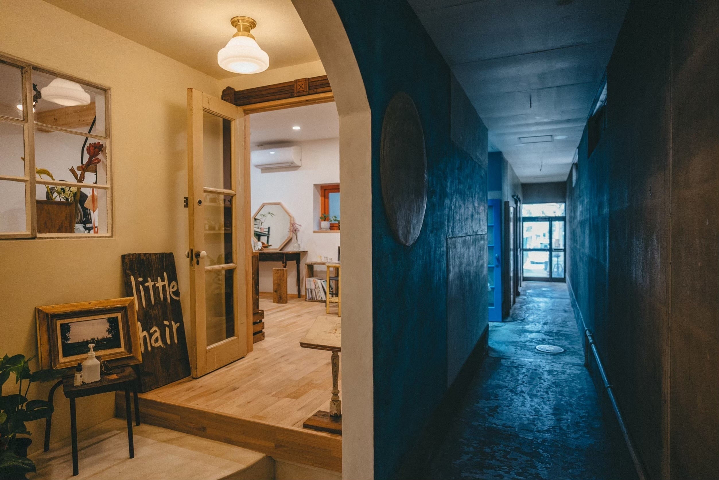 アートギャラリーの隣は、little vintageの服屋、アトリエ(洋服お悩み相談所)、美容室、バリアフリートイレが一緒になった複合施設をつくりました。