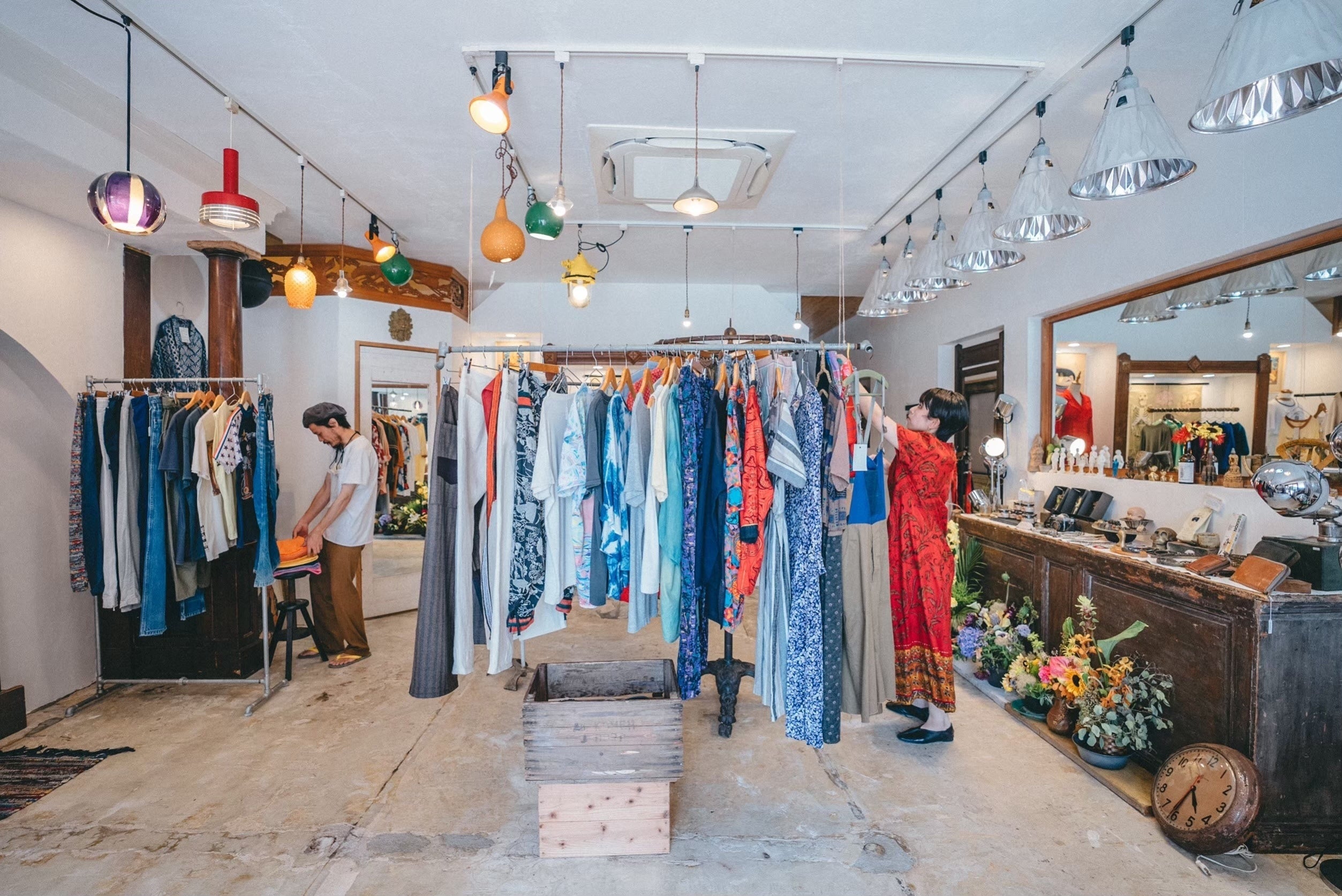 リメイクした服など、古着をディスプレイした売り場
