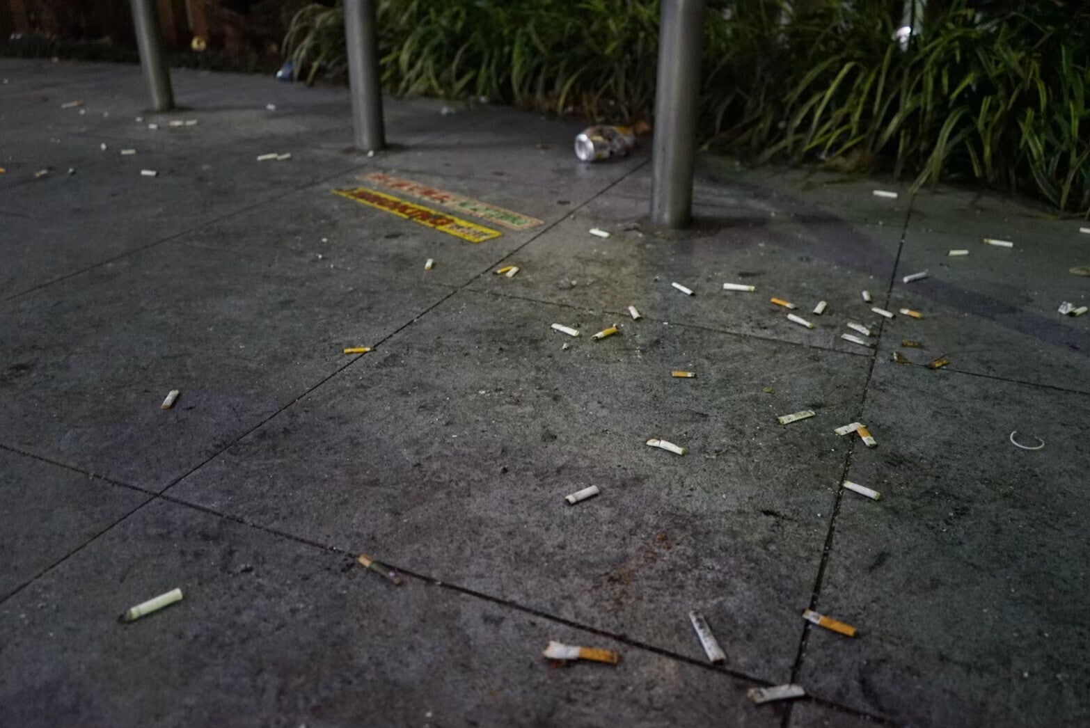 広場内には喫煙所があるものの、煙草は1日に1000本近く捨てられている