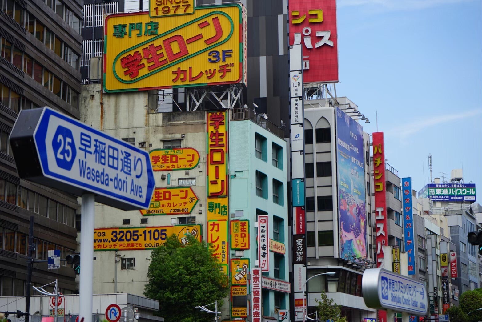 約5万人在籍しているといわれる早稲田大学はもちろん、付近にはそのほかにも大学があり、専門学校数も日本一多い街です。日が沈むにつれ駅前や商店街には若者が集い、活気あふれる「学生文化」が根付いていると言われています。