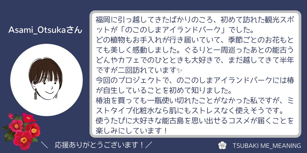 Asamiさんより、「のこのしまアイランドパーク」の魅力と応援のメッセージをいただきました!