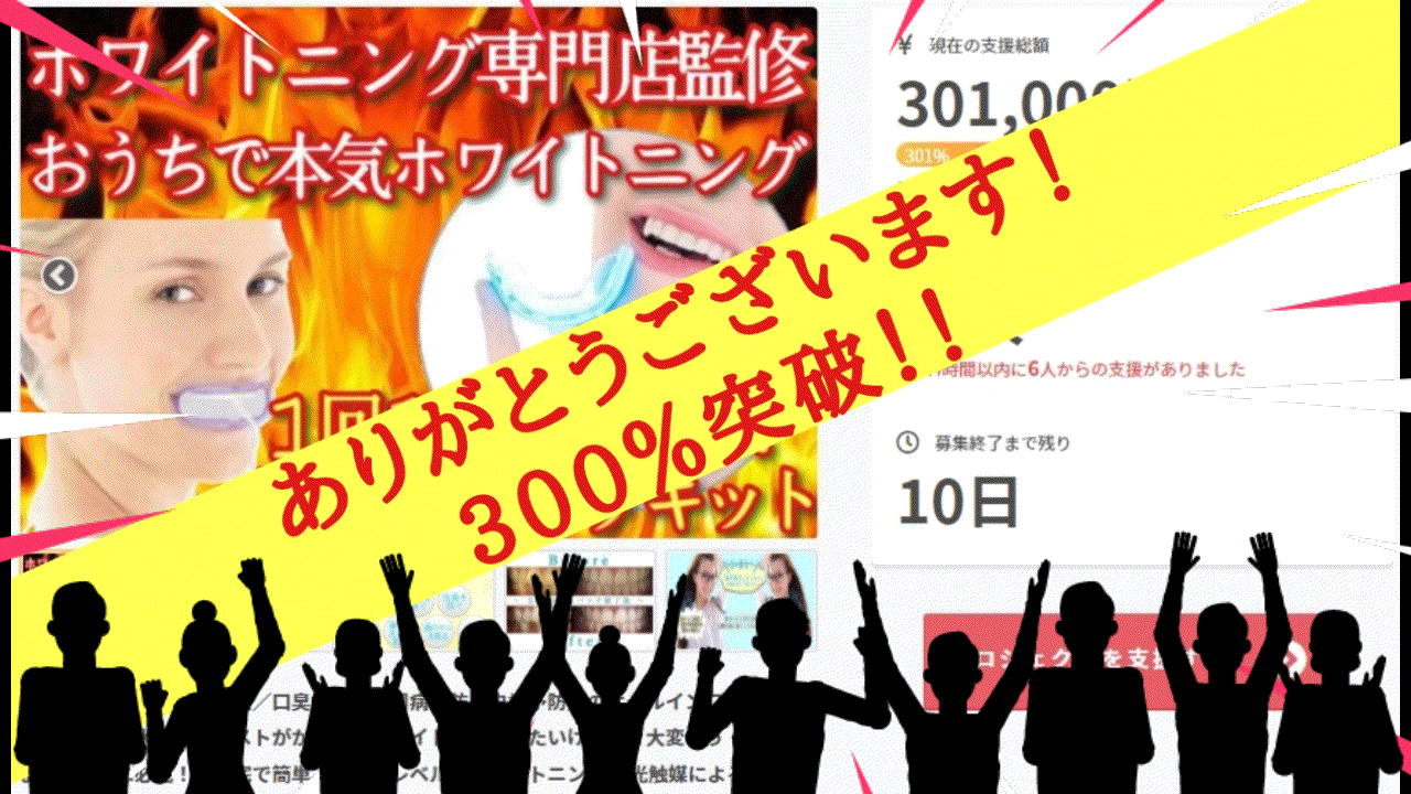 皆様のご支援のお陰様で、300%達成致しました。