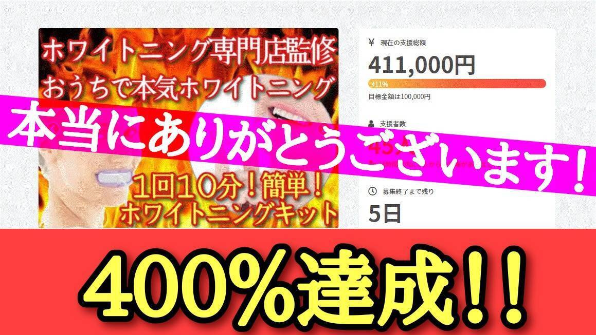 大変お待たせいたしました。ようやく審査が終わりコミュニティの公開に至りました。下記コミュニティにご参加いただくと何処よりもお得にホワイトニングジェルをご購入いただく事ができます。まだまだ発展途上で改善の余地だらけでございます。これからコミュニティをもっと使いやすく便利にしていければと思っておりますので何かお気づきの点などございましたらメッセージ等でお知らせくださいませ。どうぞよろしくお願い致します。https://community.camp-fire.jp/projects/view/542264