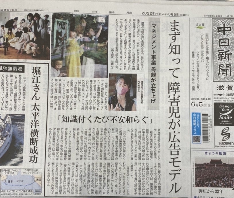 今朝(6/5)の東京中日新聞の朝刊のトップ記事に、今回の写真コンテストに出場予定のモデル2人(すみれちゃんとなぎさちゃん)が掲載されています。
