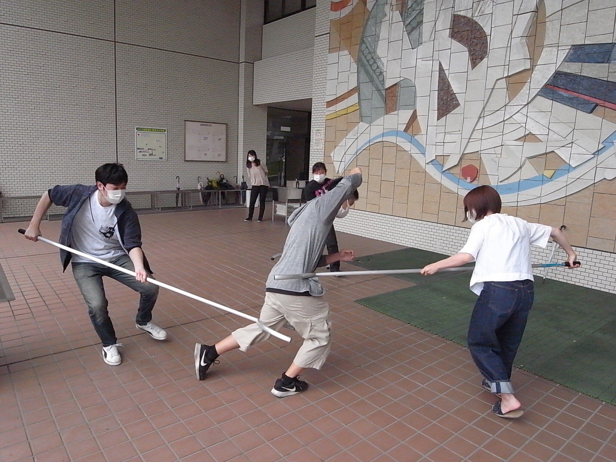 現職教諭や学部から進学した院生を対象として、教育実践を中心とした知識や技能を学ぶ高等教育機関です。研究系大学院と比較して実習期間が長いです。修了すれば、専門職修士号という学位と専修免許状を取得できます。根拠法や学校安全マニュアル等も読み込みますが、写真が示すように、刺股実技や模擬記者会見も授業で実施することで実践的な内容も学べるところです。刺股実技