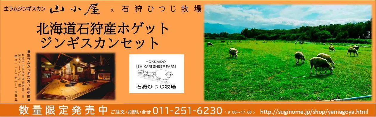 さて、この度、札幌のジンギスカン専門店、山小屋さんとの共同開発で、石狩ひつじ牧場のホゲット(1歳ー2歳未満)の羊肉に、特製のたれをセットにした商品を発売することになり、そのご案内です。
