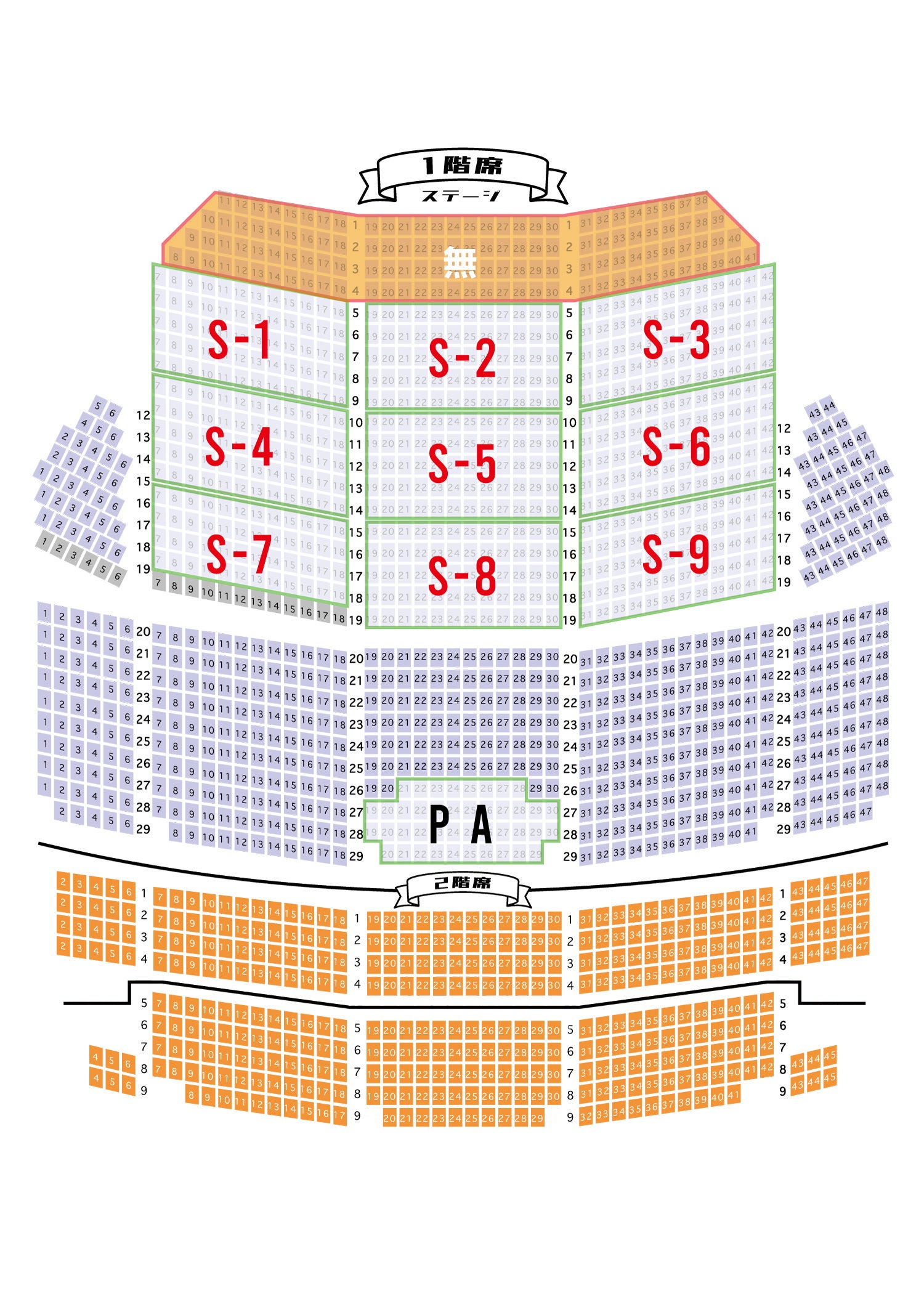 ※S席の中で9つの区分けをしてお席をご用意させていただきます。その中で、お席のご指定はしていただけません。同時に複数枚ご購入の場合は連番にさせていただだくことが可能です。