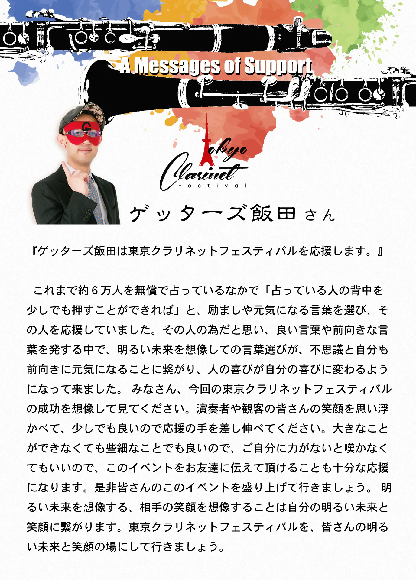 そして、会場に来てくださった方も、遠くから応援してくださった方も、支援してくださった方も、出演してくれたメンバーも、スタッフ陣営も、関わってくださった全ての皆様が、ポジティブな影響を感じられて『やっぱり生の演奏会最高!』『クラリネット最高!』『応援してよかった!』と思っていただけるゴールを目指します!