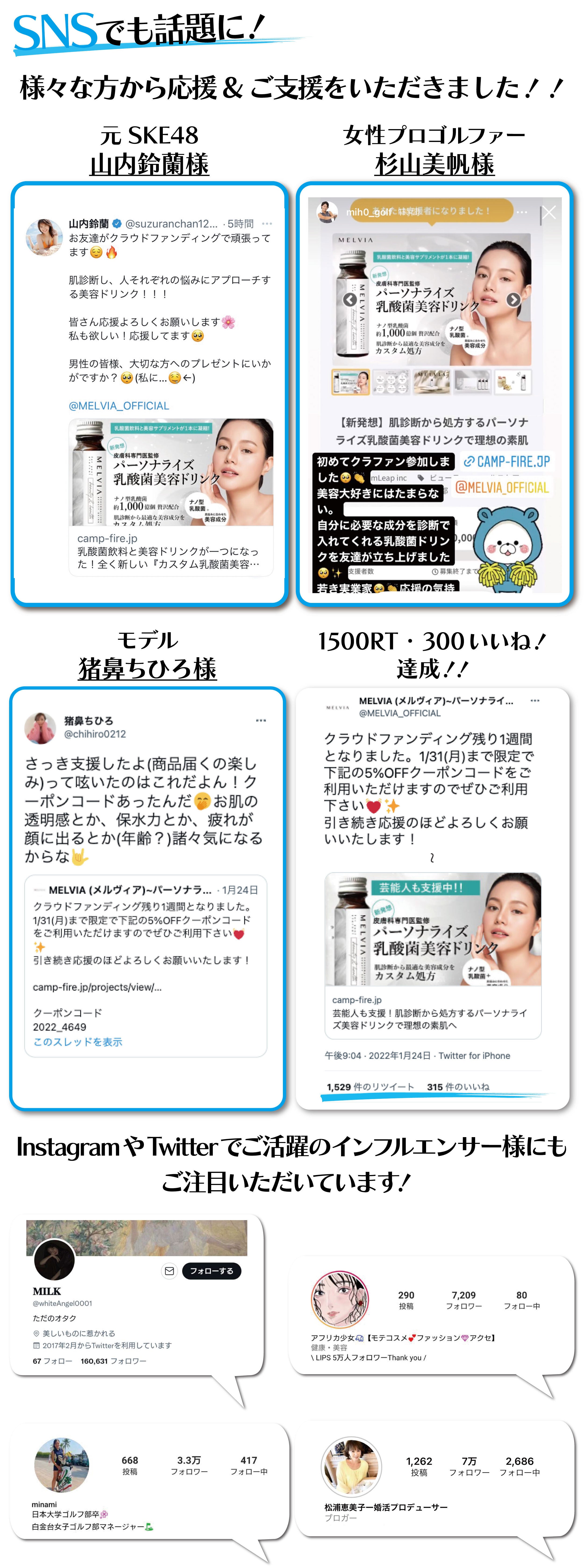 2022/06/03 15:47Campfire愛用者の皆様お世話になっております。MELVIA運営です。ご支援者様へのご報告はすでに完了しておりますが、その他Campfire愛用者の方々へ再度ご報告をさせていただきます。本プロジェクトはご支援者様のご協力もあり、1/31に無事目標金額を達成し、5/20(金)より、公式サイトをオープンいたしました。https://melviabeauty.com/今回プロジェクトへのご参加が間に合わなかった方々や、終了後にご興味いただいた方々はぜひ公式サイトへお越しください!今後とも何卒よろしくお願いいたします。MELVIA運営事務局 もっと見るMELVIA配送完了のお知らせ