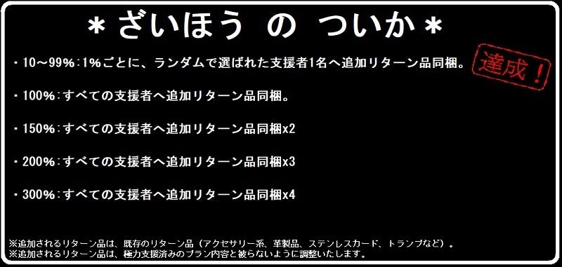 達成した%に応じて、リターン品を追加でご用意することになりました!
