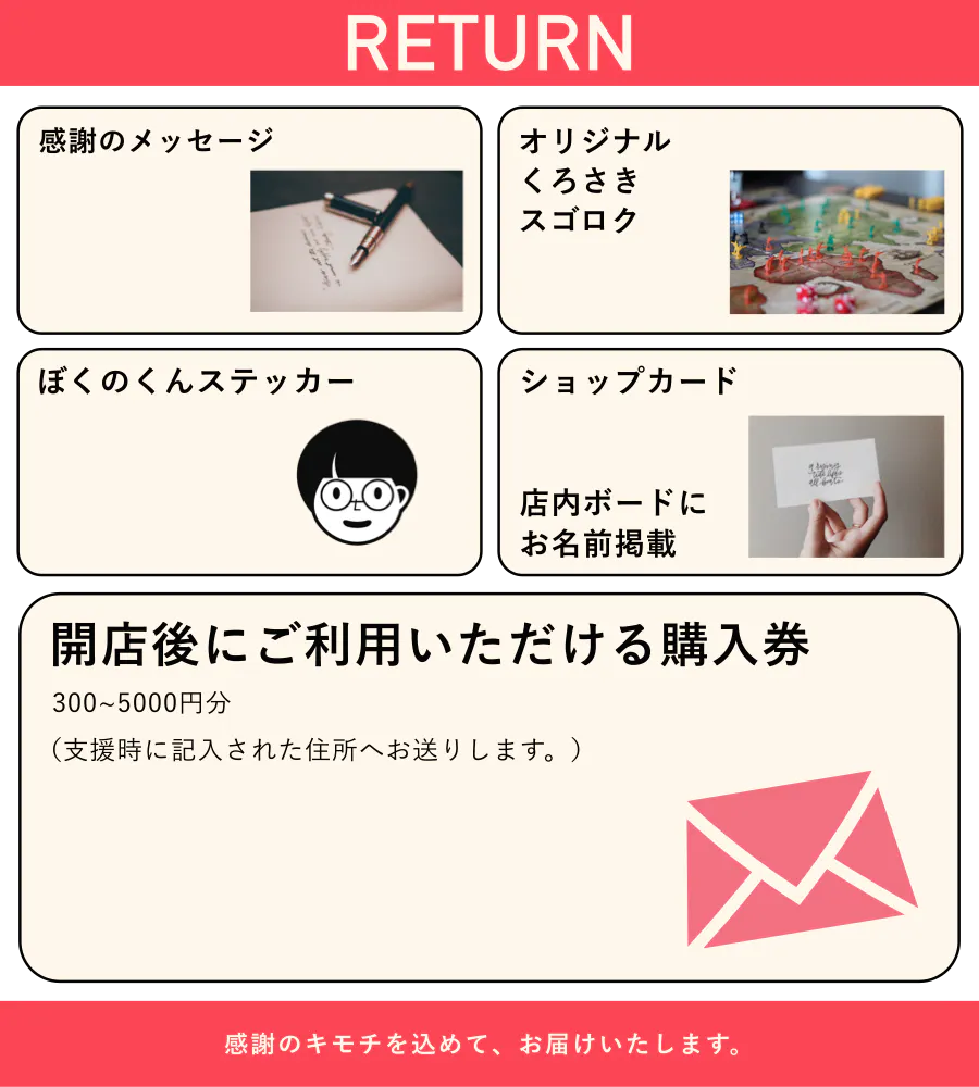 (いただいた応援資金が余った場合には、今後のイベントや店舗の運営に使わせていただきます)