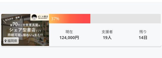 2022/02/12 12:30この度は、当プロジェクトへの拡散・ご支援していただいた事、誠にありがとうございます。早いもので、クラファン期間も「残り2週間」となりました。再度お願いとなりますが、更なる拡散・応援のほどよろしくお願い申し上げます。【本棚オーナーのお申込をされた方へ】今後のスケジュール等や振り込み時期・搬入日程等は、クラファン終了後の2月末までに、メール(またはSMS)にてご案内いたします。今しばらくお待ちくださいませ。2022年2月12日ぼくの書店 プロジェクト代表 大西貴也 もっと見る