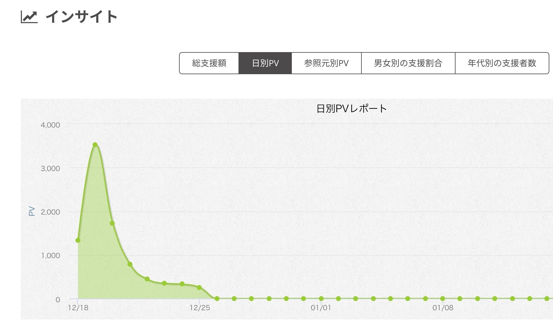 初動は自分の持つ全人脈(?)を駆使したのと、いろんな方々が拡散して下さったおかげ(本当に有り難かった!涙 このご恩は忘れぬぞ...)でPVがどかーーーん!と増えたのですが(※TOP画像参照)その後の急降下っぷりを見て下さいよ。笑 ここ数日は寂しいもんです。。