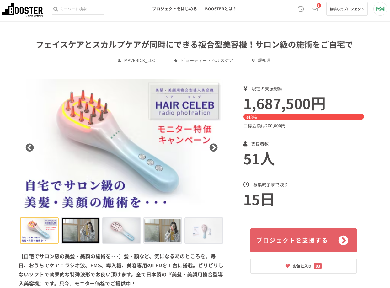 皆様この度はヘアセレブのプロジェクトにご支援を頂きまして、誠にありがとうございます!おかげさまでついに本日150万円を突破致しました!そして、BOOSTERのTOPページにて、ヘアセレブが掲載されております!また、現在、こちらのリターンのみとなります。【クラファン特価】ヘアセレブ×1台 限定20名様 34800円ヘアセレブ × 1台残り4台となります。より多くの方々にヘアセレブをお届けできように頑張りますので、SNSなどでの拡散にご協力を頂けますと幸いです。引き続き、宜しくお願い致します。ヘアセレブプロモーションチーム一同