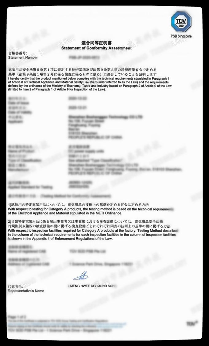 ●日本規格のPSE認証をしました、安全規格、品質テストに合格していますので、安全安心にお使いいただけます。