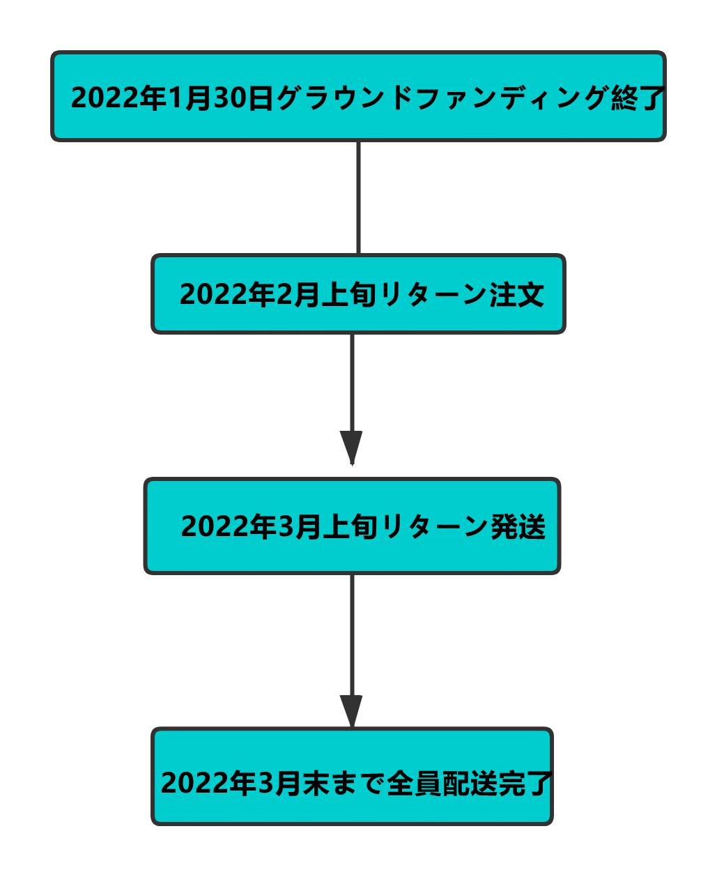 ・配送に関するリスク:台湾工場から日本倉庫まで船便で(通関も含め)の所要日数は1ヶ月程度かかり ます。(日本倉庫に一部在庫がございますが、追加製造になる場合、コロナの状況によりリターン配送 予定より長伸びる可能性もあります)
