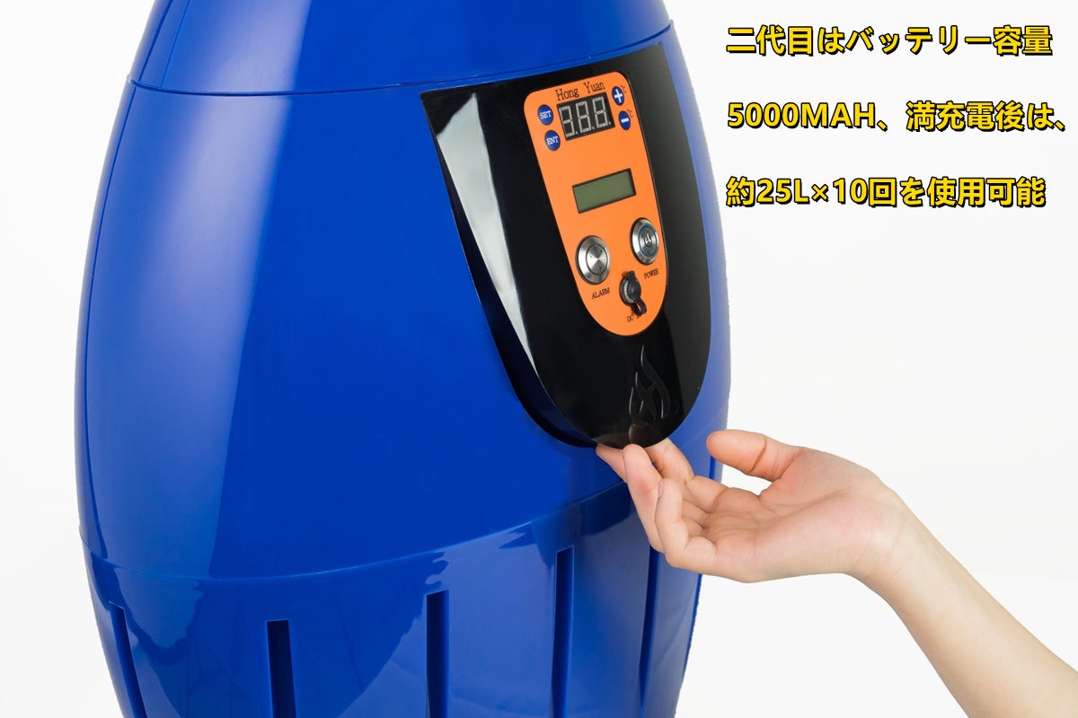 ●充電式バッテリー内蔵(サムスン21700式)、満充電後は、約25L×10回を使用可能です。※ 注:一代目バッテリ 18650式、満充電は、約25L×8回