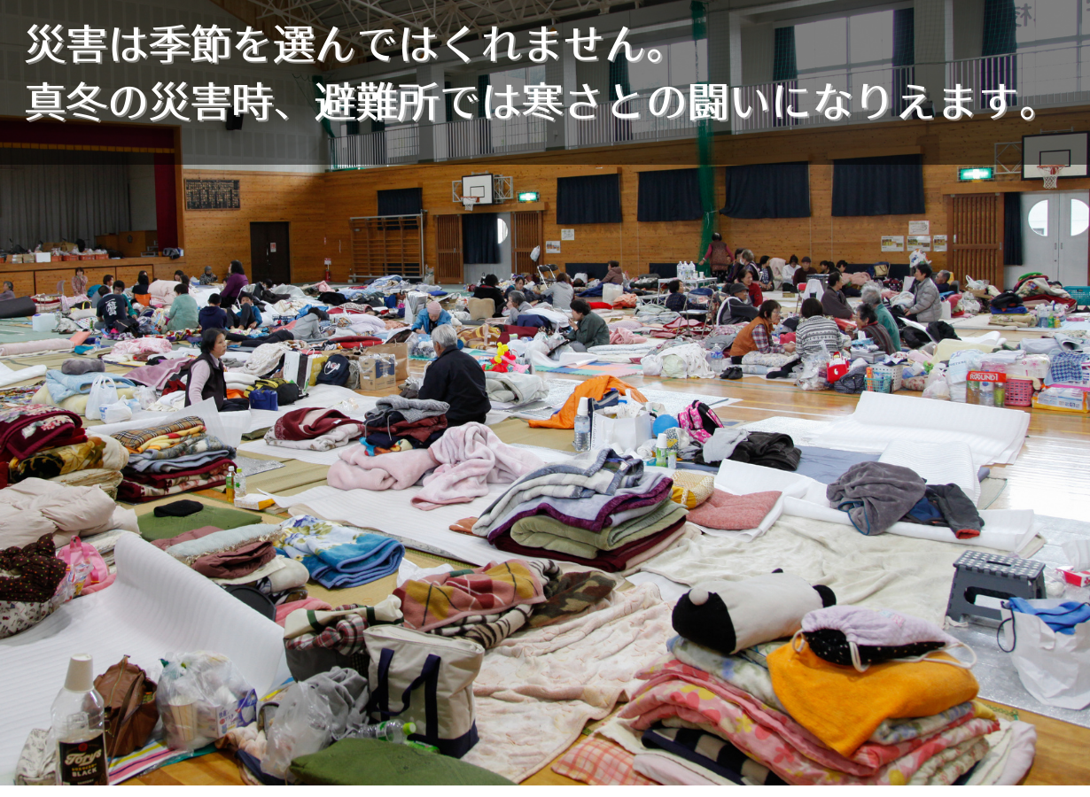 災害大国である日本においては常に備えをしておく必要がありますね。冬場の避難所はとにかく寒さが過酷になりがちです。また不特定多数の人が集まる場において大切なものは肌身離さず持っておきたいものです。