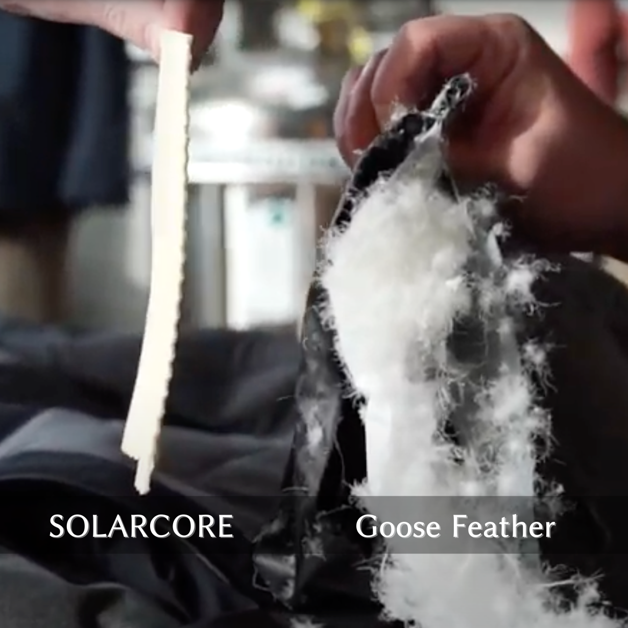 これだけ厚みのあるフェザーが使われていることがわかります。SOLARCOREと比較をするとその差は歴然としています。