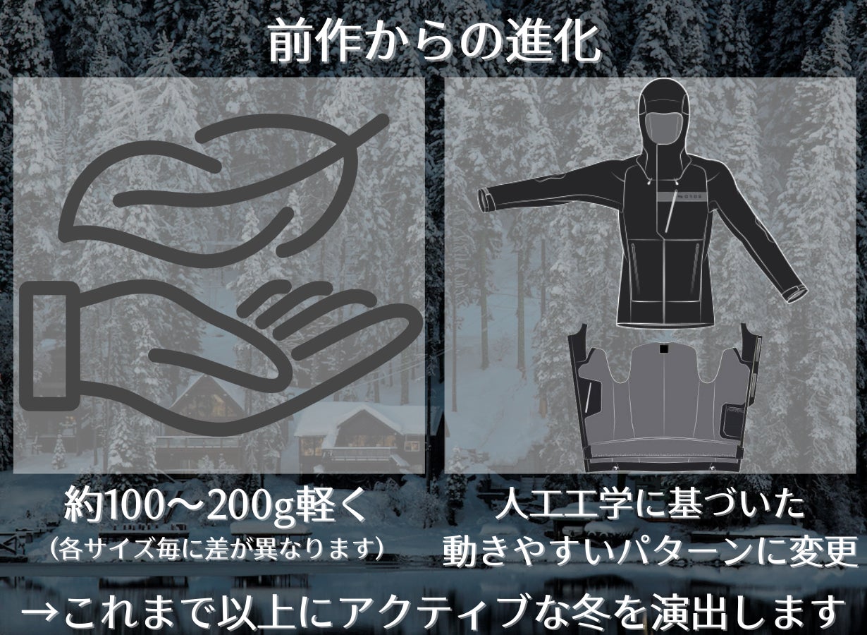 ダウンジャケットを着たことがあれば誰しもが感じたことのある動きづらさはSOLARCOREで解決が可能です。