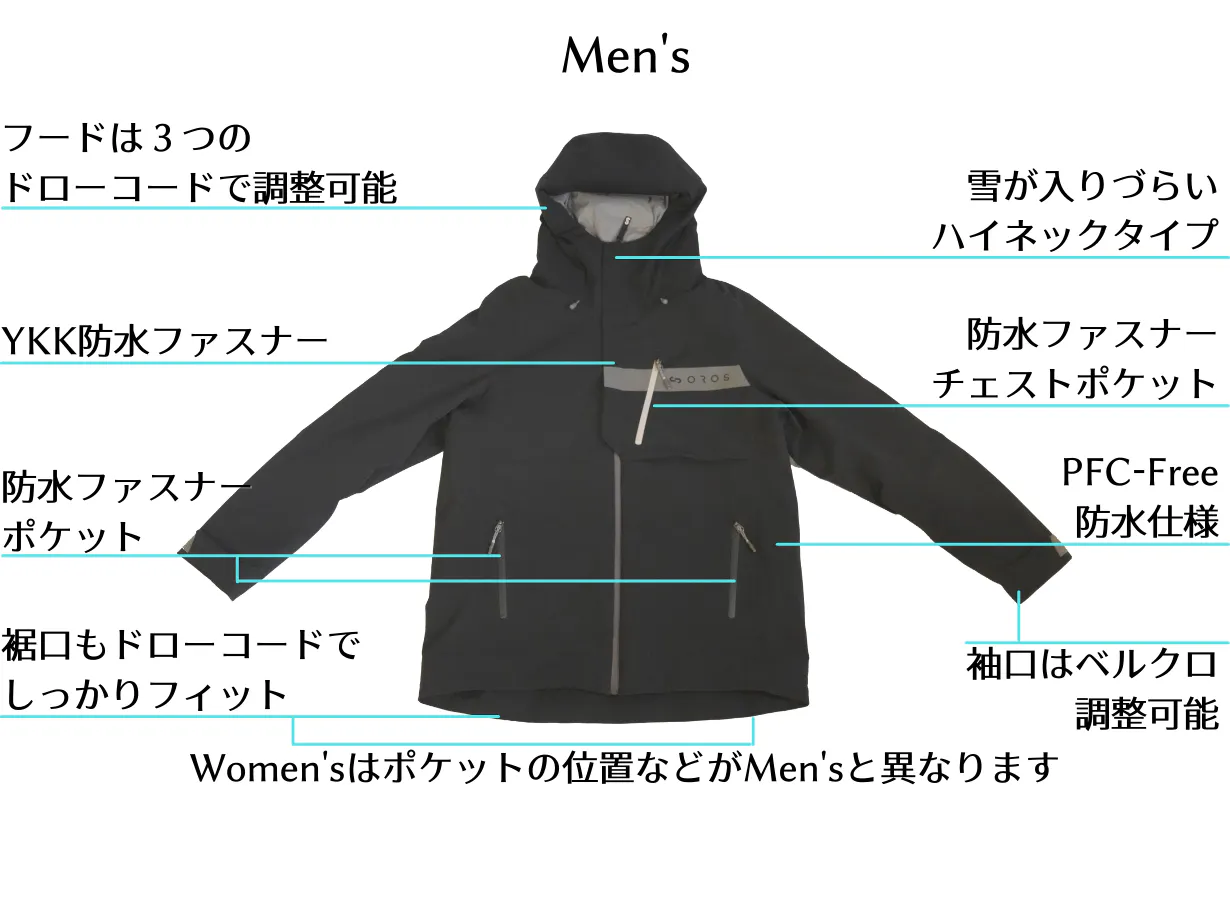 実はDWR加工はPFCと呼ばれる環境に害を与える化学薬品が使用されているケースがありますが、OROSは環境保護への取り組みとしていち早くPFC Freeによる加工に取り組み始めました。防水レベルをしっかり確保しつつ、環境への配慮も欠かしません。