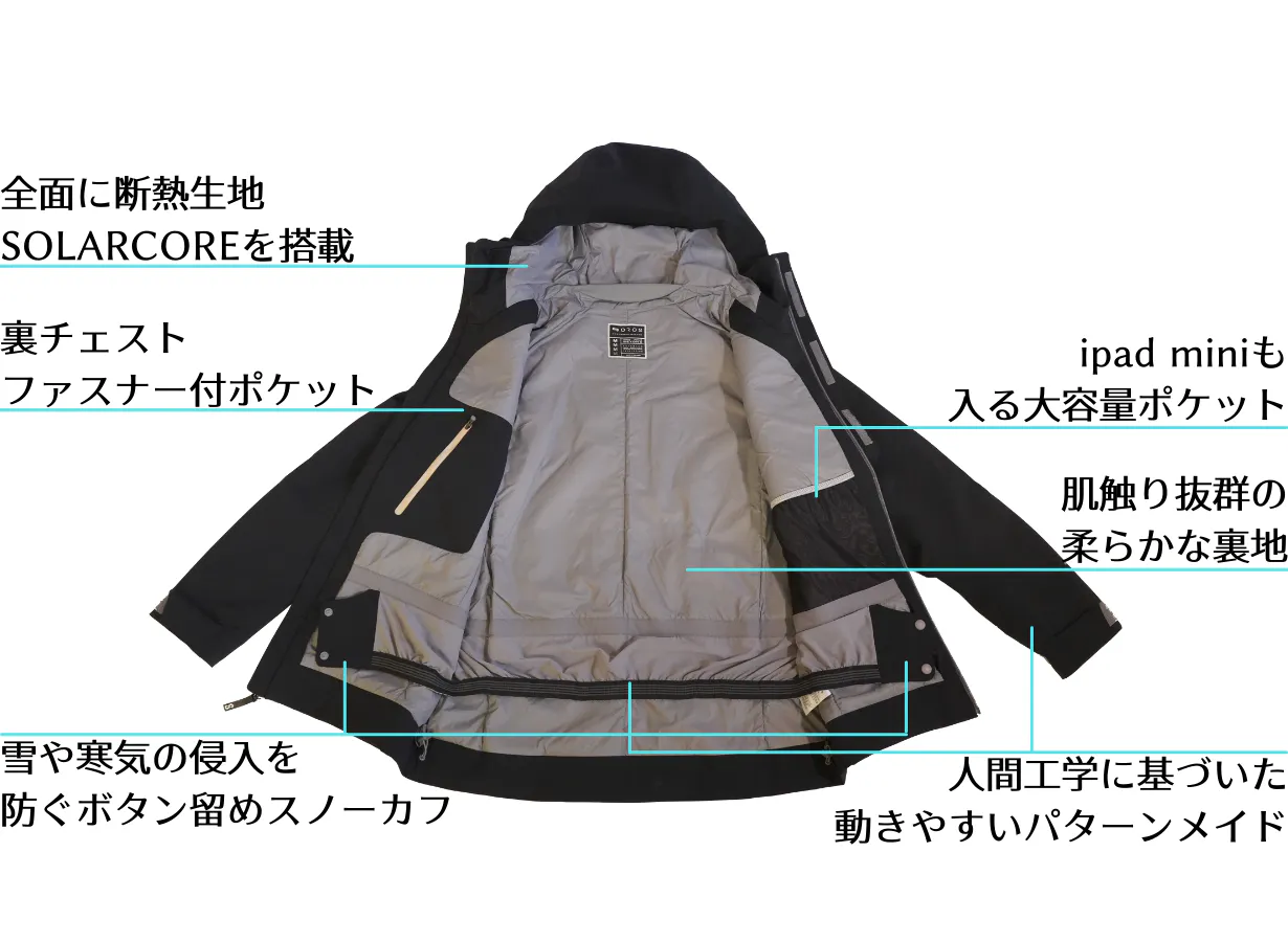 ダウンジャケットを着たことがあれば誰しもが感じたことのある動きづらさはSOLARCOREで解決が可能です。