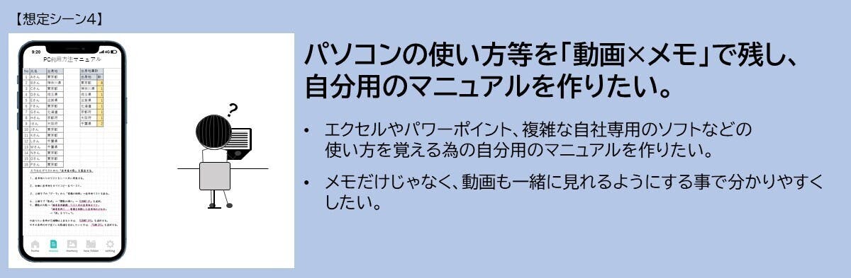 以下は、どんな方が、どんなシーンで利用することを想定しているかのまとめです。
