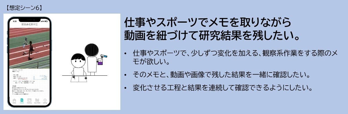 リターン発送時に皆様の手元にアプリケーションも一緒にお届けできないことが大変心苦しいのですが、是非、memo:Re(メモ帳)にメモを残し、アプリケーションに一緒に掲載する動画や画像を撮り貯めながらお待ちくださいませ。