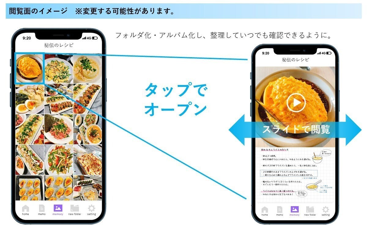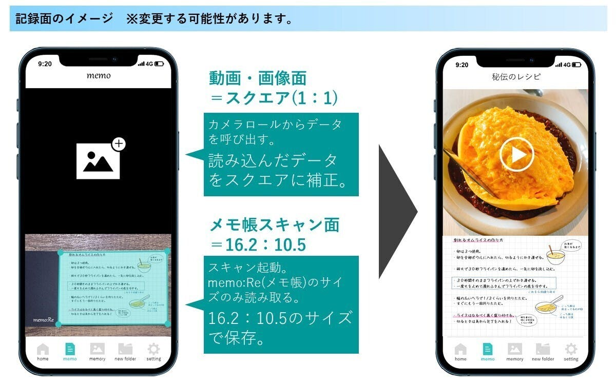・memo:Re(アプリ)につきましても、開発に伴い、デザイン・仕様が変更となる可能性がございますのでご了承ください。