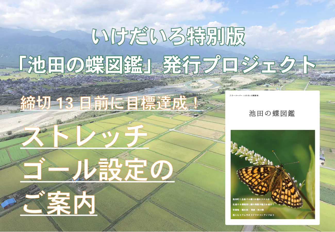 ストレッチゴールを達成することで、より多くの皆さん、特にこれからの池田町を担う子どもたちの世代に『池田の蝶図鑑』を読んでもらうことができるようになります。