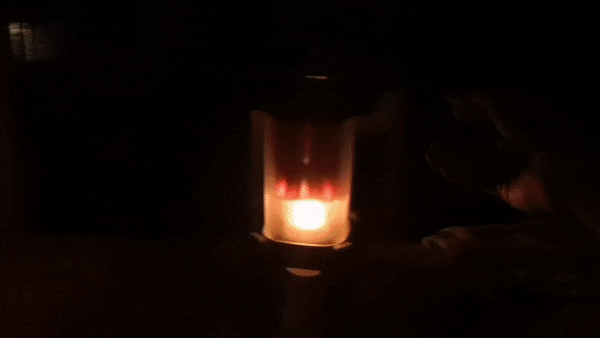 オイルランプの小さな炎の明かりをなんと約200ルーメンに増幅します。明るさ、ざっと20倍!