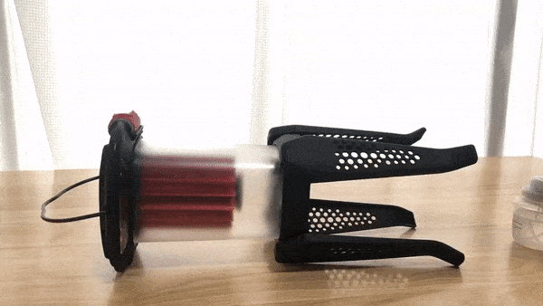 セットアップはたったの15秒程度。オイルユニットに着火して装着すればOK。