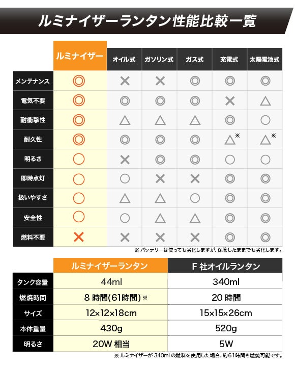 以上、ルミナイザーランタンの特徴をご説明しましたが、