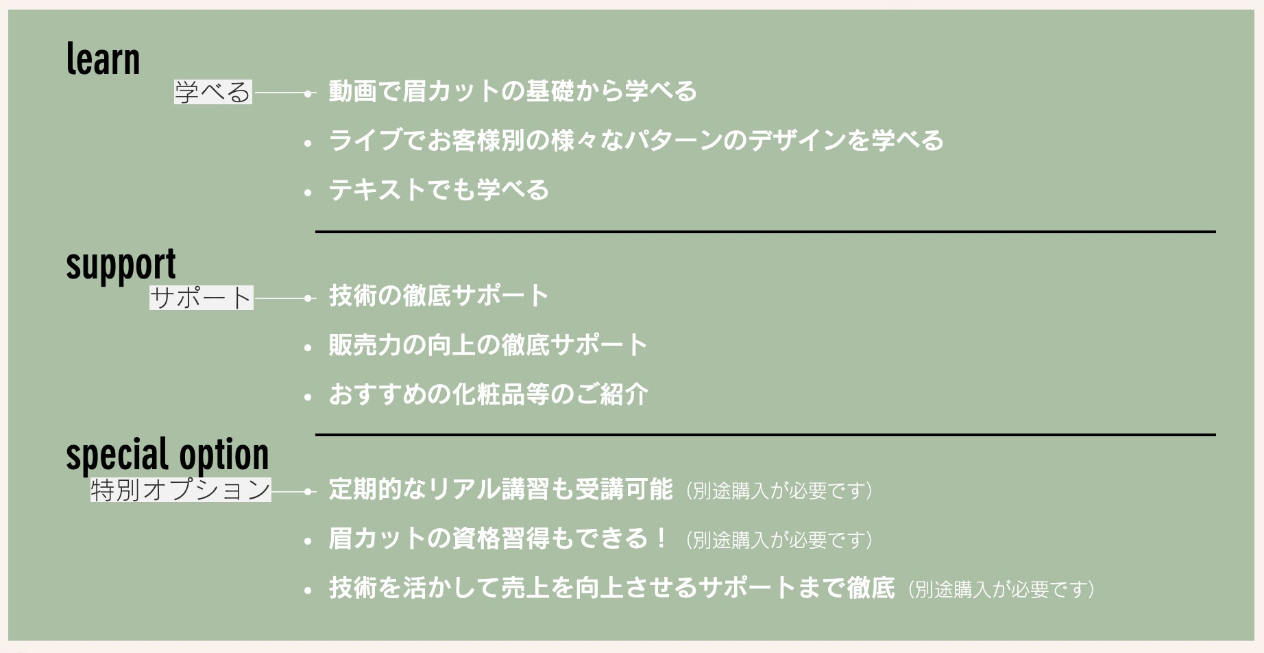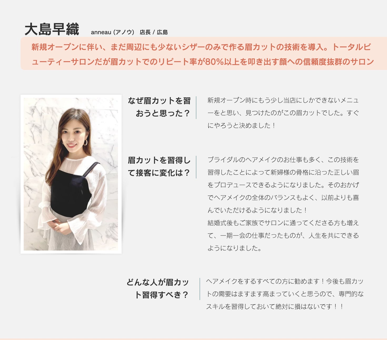 しかし、従来の美容師は、眉カットを体系的に学んだ経験がないために知識や技術に乏しく、お客さんに対してはサービスの一環として提供するに留まっていました。