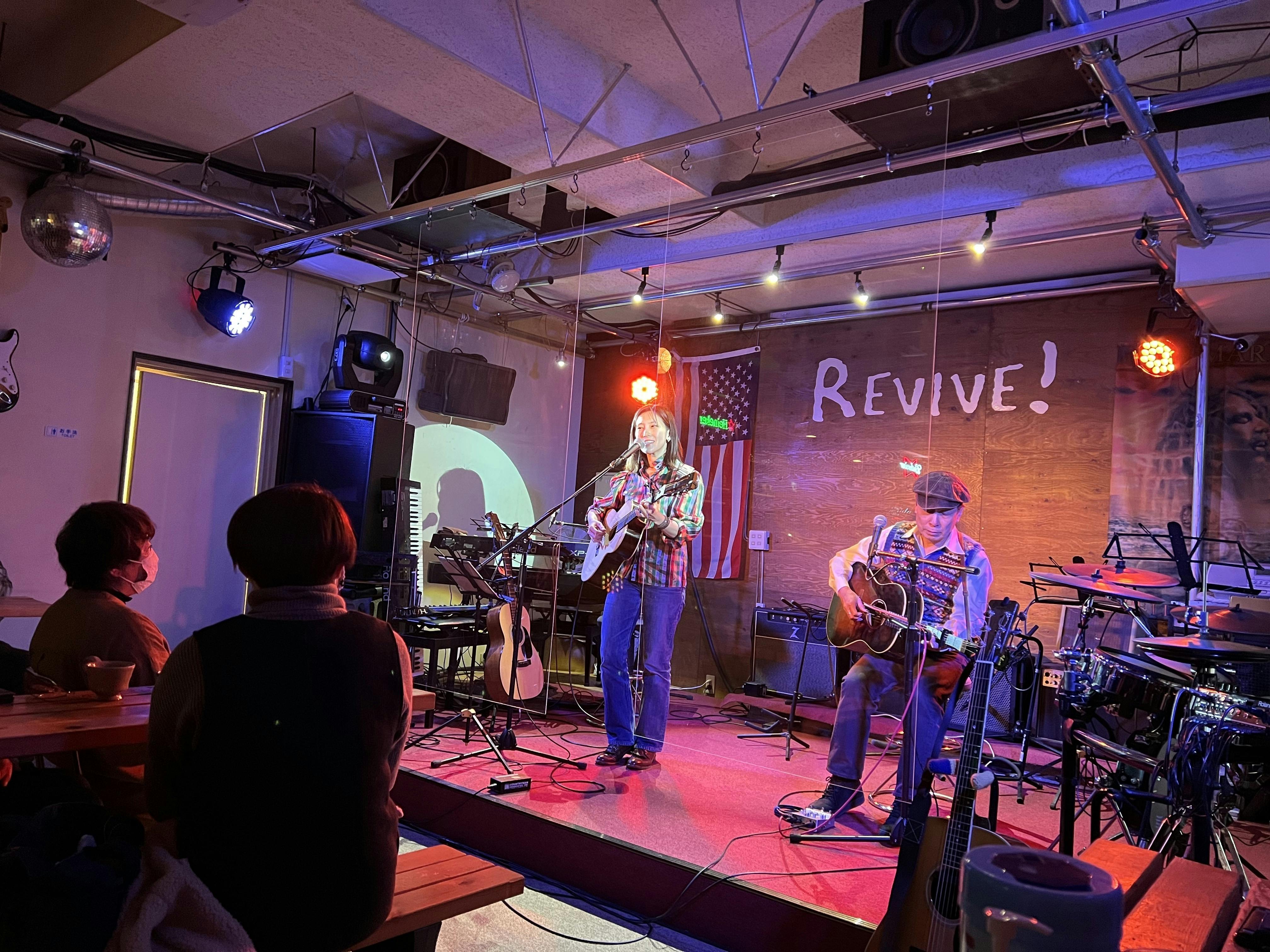 海風音楽庵の実現を応援してくれている津久見市のミュージックcafe REVIVE!で1月15日、ツアーで訪れたNEKOの常富さんとシンガーソングライター・いわさききょうこさんがステージから多くの来場者にクラウドファンディングの件を紹介してくれました。