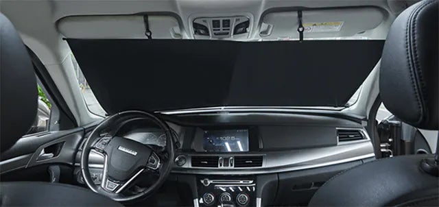 CARMAFIAサンシェードはフロントガラスの下の部分に取り付けるタイプ。