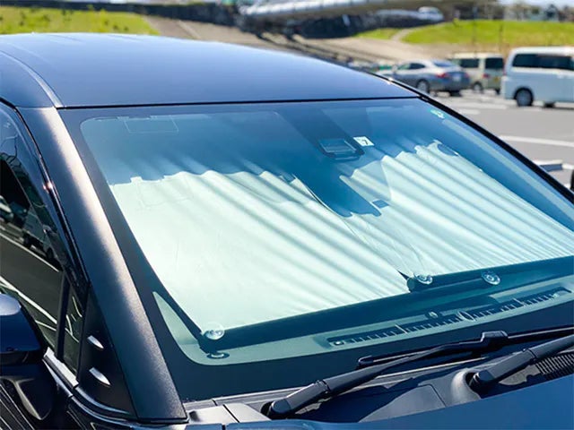 CARMAFIAサンシェードは駐車中の愛車を真夏の日差しから瞬時に守ります。