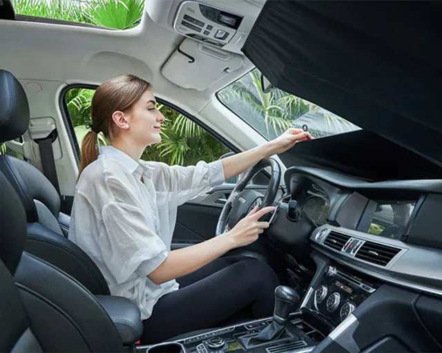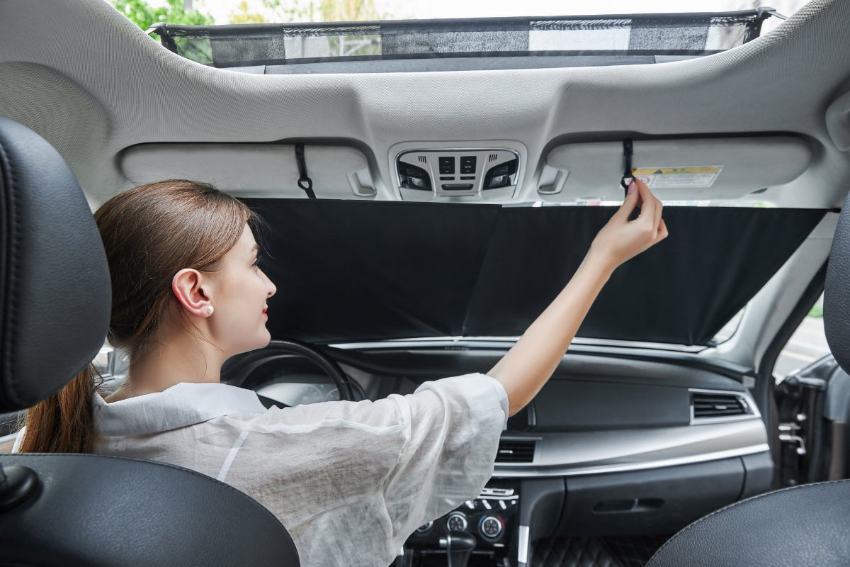 CARMAFIAサンシェードはたった1秒でセットが可能なロール式。