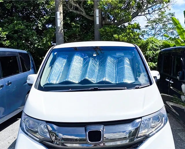 左右のシェードでフロントガラスの幅に合わせてセットするので、トラックのようなフロントガラスの形状が異なる車以外なら幅広い車種に対応可能です。
