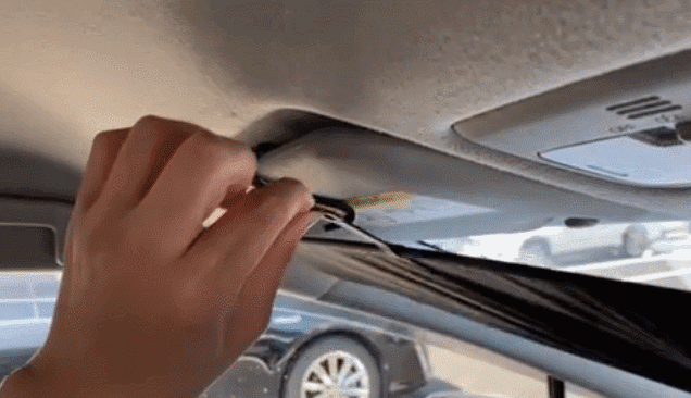 ④ループに合わせ左右のサンバイザーにフックを取り付ければ完成です。