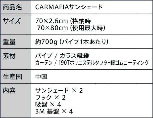 CARMAFIAサンシェードは2本組。