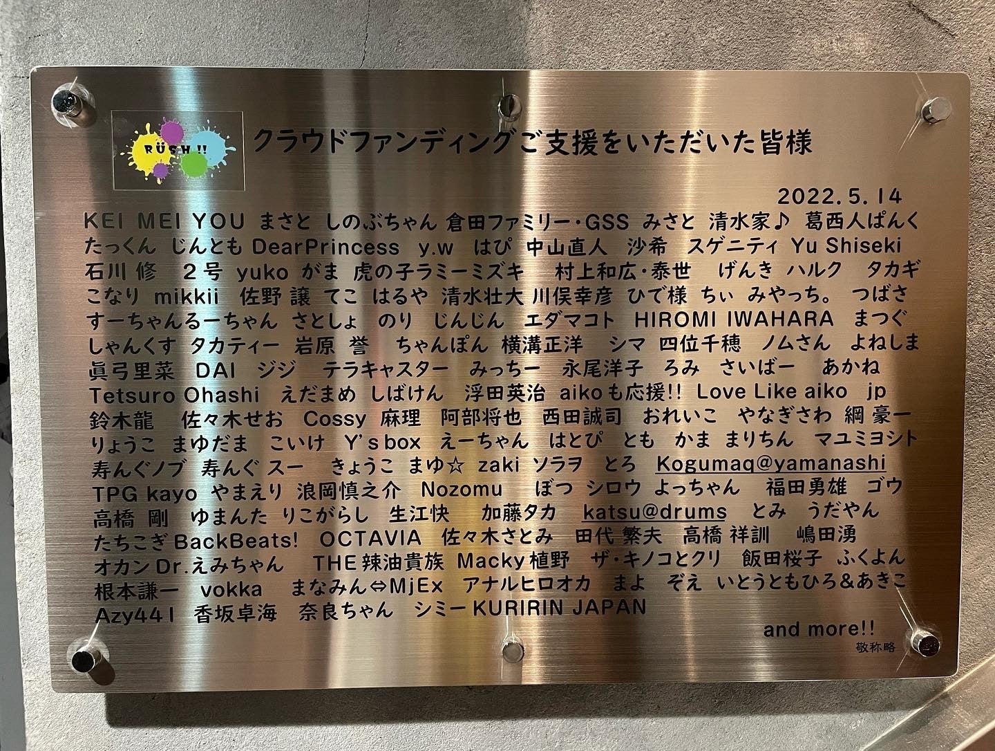 ご支援者様からの支援者お名前ボードも立派に完成しましたのでこちらにてご報告させてください。