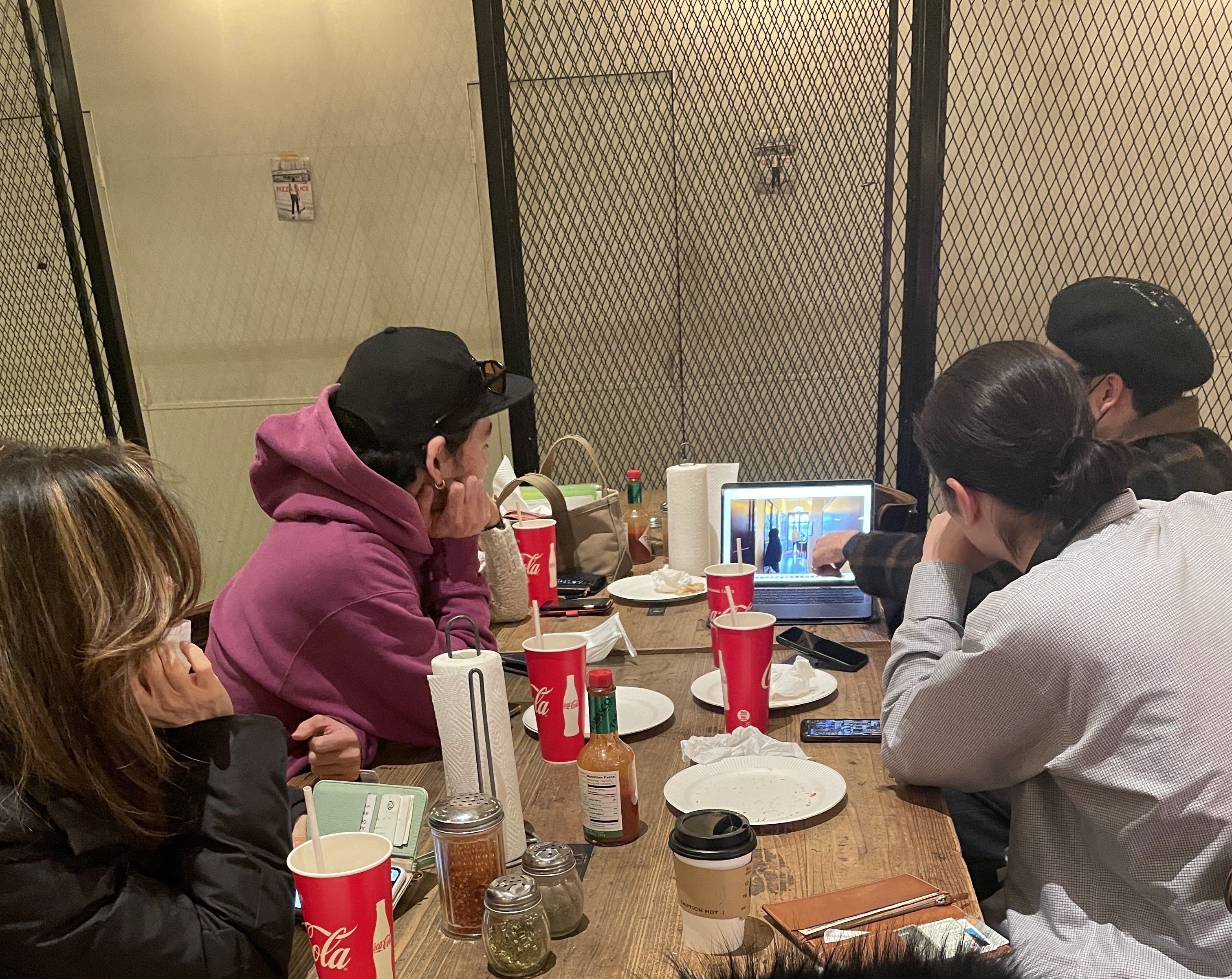 MVのロケ地は某所にある一軒家レストラン今日は撮影チームが初めてそこを訪れ、その素敵さに感激!!かなり丁寧に各所を動画で撮り、カメラワークを考えています。ロケハンの後、ピザ屋に集合して、撮影日の段取りやそれまでに必要な事を打ち合わせ。ロケハンを再生しながら、熱く語る彼らの本気度が伝わって、フジヤマもワクワクが倍増します。