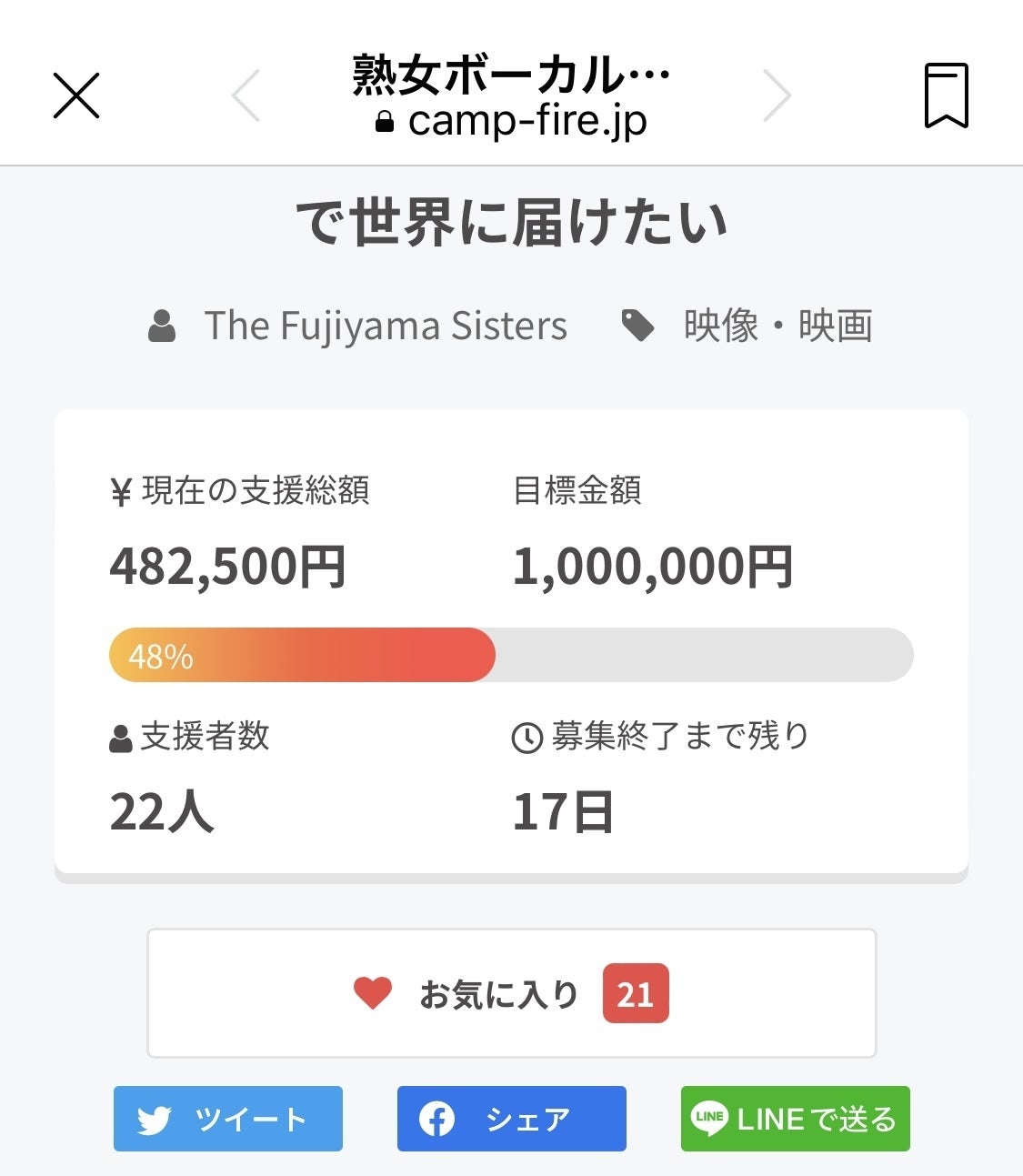 皆様のご協力と愛でなんとか目標額の半分の一歩手前まで来ました。本当にありがとうございます。あともう一踏ん張り何とか頑張りたいと思いますので引き続きどうぞよろしくお願い致します。1人でも多くの皆様、どうか「情熱を送ってくださーい」
