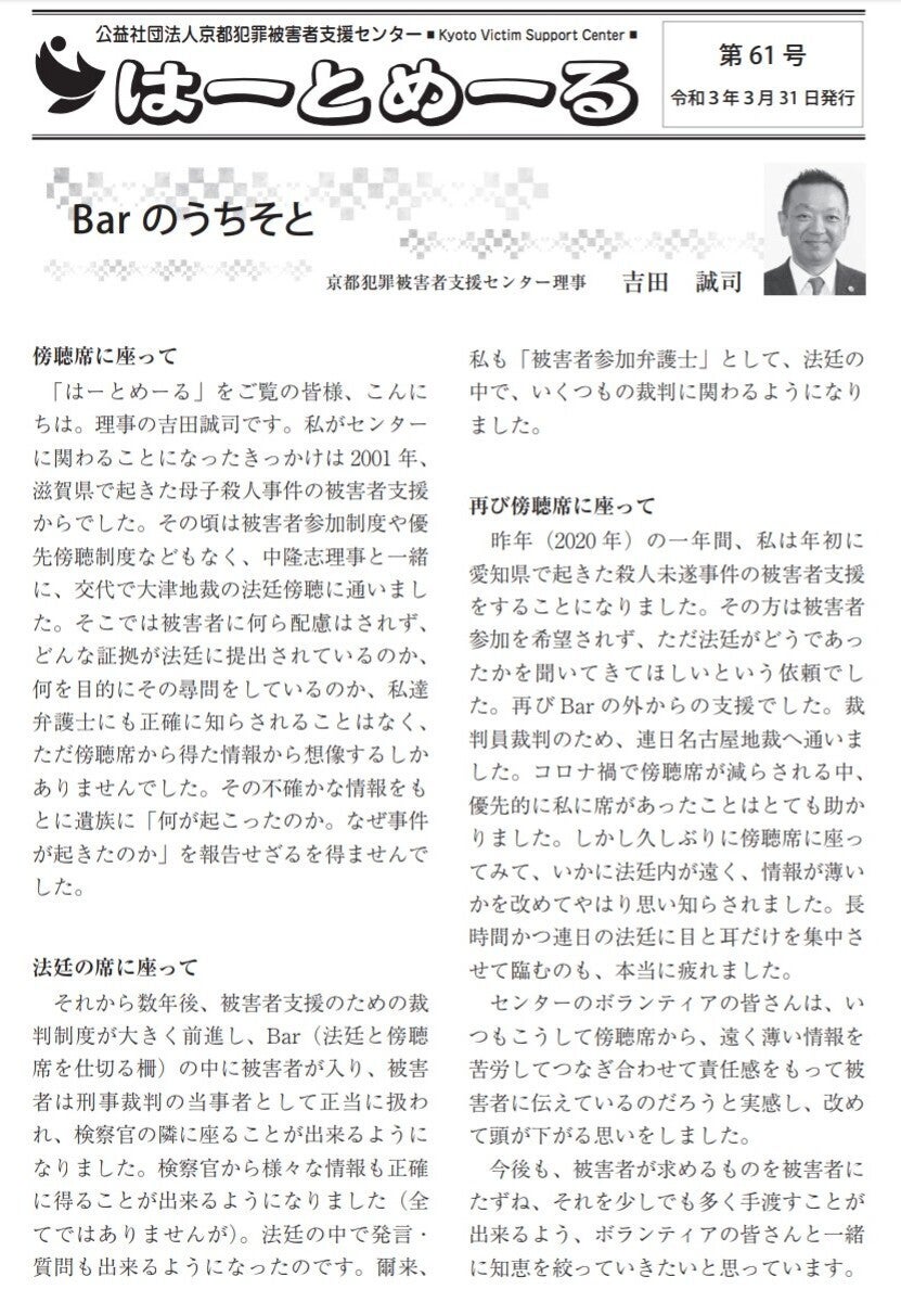 当センターでは、会報紙『はーとめーる』を年3回発行しております。いただいたご寄付はこのような活動へ使わせていただくという一例として、はーとめーる第61号(令和3年3月31日発行)のコラムを掲載いたします。ご一読いただければ幸いです。