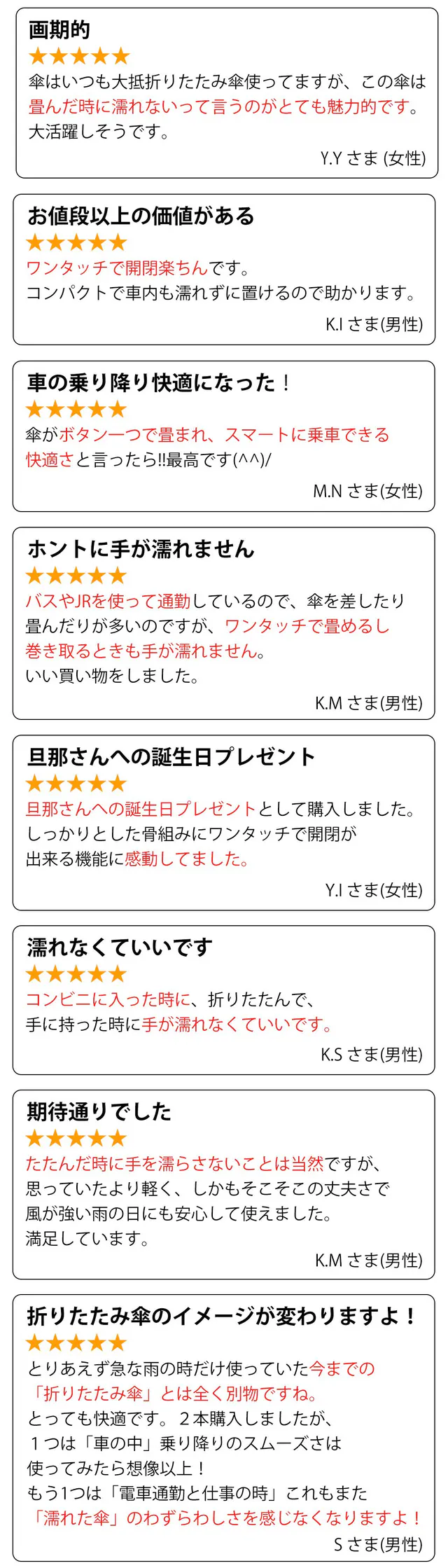 また、使い捨ての傘にならず、長く快適にご愛用いただけるよう365日間長期保証と永続的なサポートをさせていただきます。